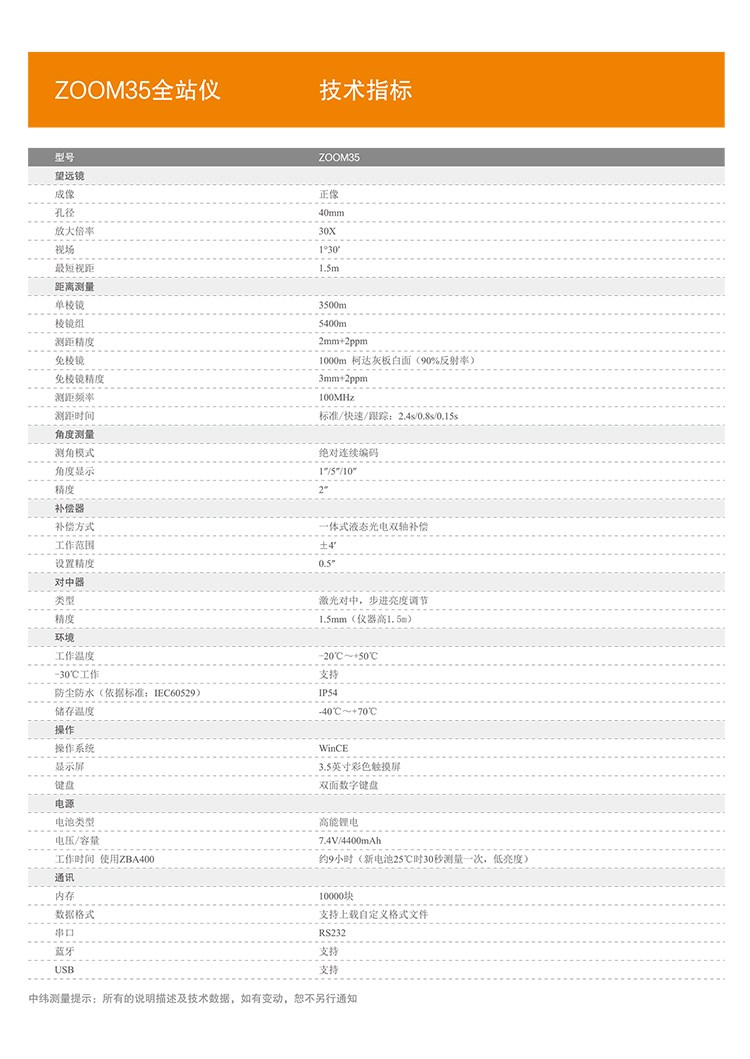 中緯全站儀ZT30RPro中緯ZT30RPro全站儀使用說明書中緯ZT30RPro全站儀為滿足用戶不斷變化的需求全新出發。該系列中緯全站儀延續了中緯全站儀一貫的高品質,高精度技術特色。源自瑞...